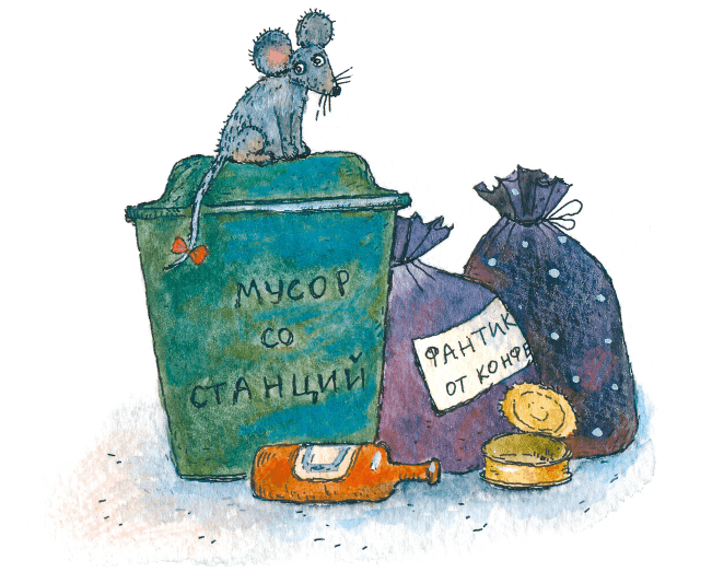 Маленькие помощники добираются домой усталые, а тут ещё по пути мусор собирать надо. Набросают люди фантики, пакеты, банки и бутылки с платформ на рельсы, а малыши ходят ночью, убирают. Складывают в огромные фиолетовые мешки.