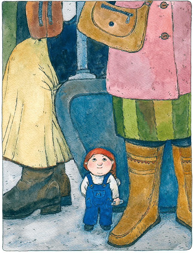 Когда поезд вдруг остановится в тёмном туннеле и стоит так минуты две или три, это значит, что машинист пропускает метрольцев через пути. А они спешат, торопятся, карабкаются на маленьких ножках через рельсы, перетаскивают свои ящички с инструментами. А потом помашут машинисту ручками и скроются за потайной дверцей в стене туннеля. Машинист улыбнётся, снова включит мотор, и поезд поедет дальше. Однажды я и сама слышала, как метрольцы топают башмачками, пыхтят, гремят своими ящичками. А когда поезд тронулся, я успела разглядеть, как исчезает в тёмном переходе чья-то лохматая голова. Но тогда я ещё не знала, что это метрольцы, зато теперь знаю.