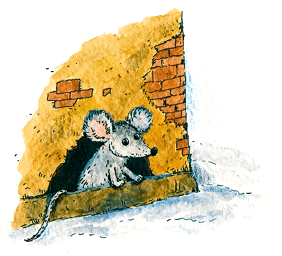Вдруг совсем рядом раздался оглушительный писк и визг. Кто-то дрался, да не на жизнь, а на смерть! Видит Юнька, вертится юлой чёрная крыса с белыми усами. У крысы длинный хвост, мордочка с розовым носом, красные испуганные глазки. А в крысу вцепилась большая рыжая кошка.