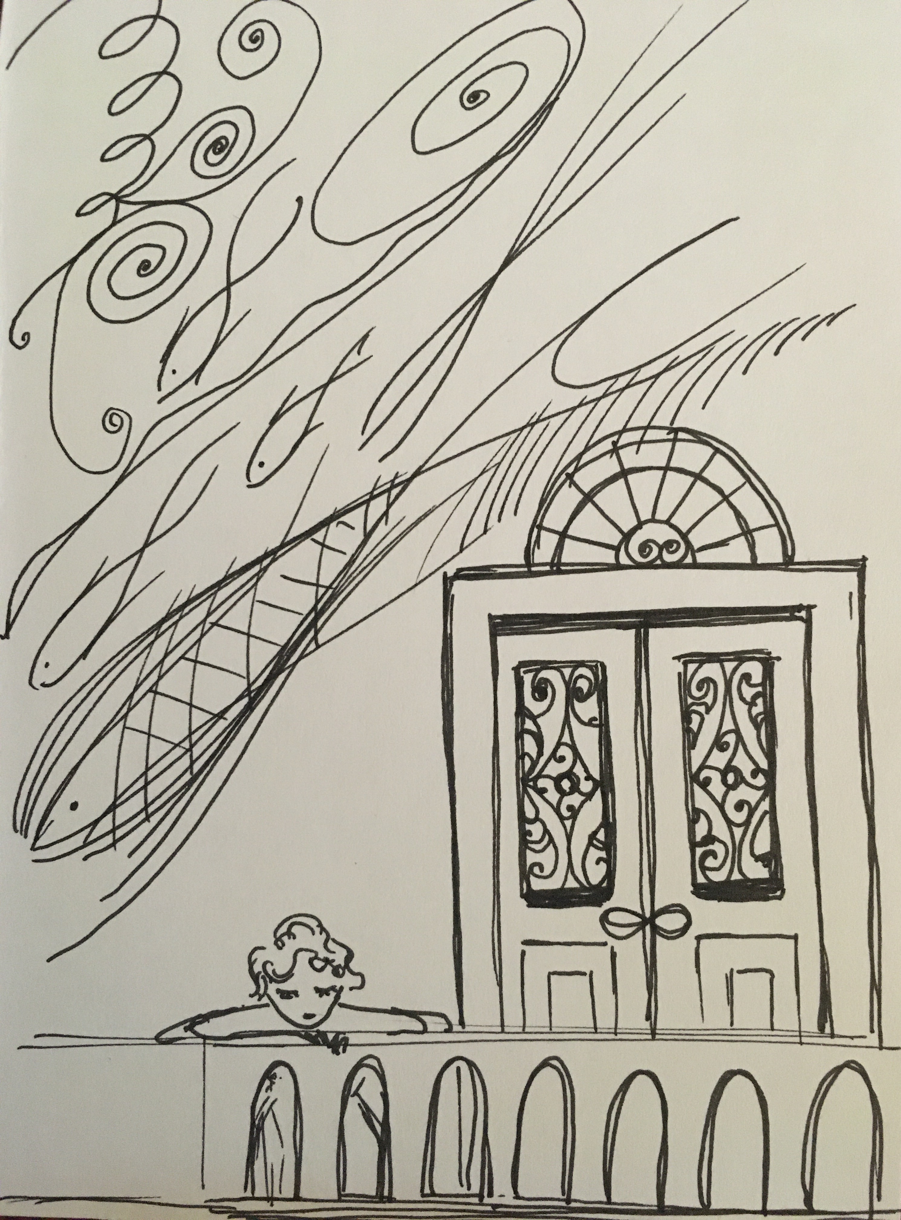 «Только будь внимательна Марта, в театре находится много духов. Духи обожают театр, поэтому слетаются отовсюду, посмотреть новую постановку, они висят под потолком, поэтому, войдя в зал, поздоровайся с ними»,– предупредила бабушка Марго девочку.
