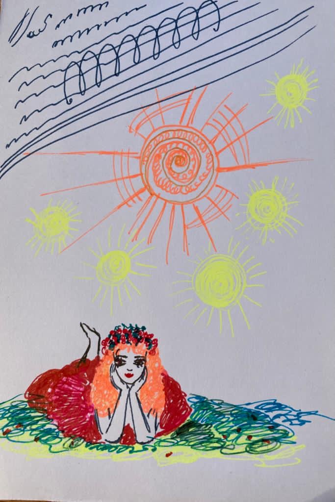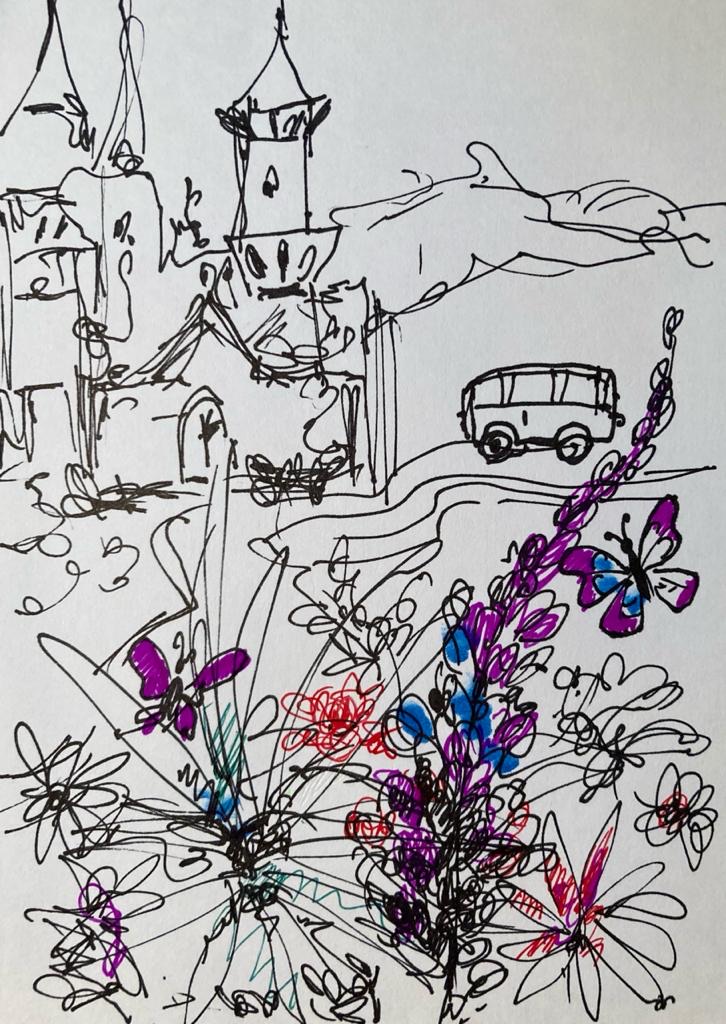 Когда она проснулась и открыла глаза, то ясно почувствовала, что все вокруг изменилось. Освещение, воздух, краски, буквально все, стало ярче и чище. Выглянув в окно, она замерла на мгновение от неожиданности, никогда в жизни не видела такой красоты. Воздух благоухал, перед ней простирались необъятные поля, усеянные цветами, порхали бабочки. Вдалеке виднелось строение, похожее на замок, как будто сделанное из стеклянного кружева, переливающееся на солнце.Наверно, тут было бы логичным испугаться или по крайней мере удивиться, но все ее существо наполнилось какой-то необъяснимой радостью, ощущением возвращения домой. Она вышла из автобуса и пошла по направлению к замку по дорожке, проложенной через поле.