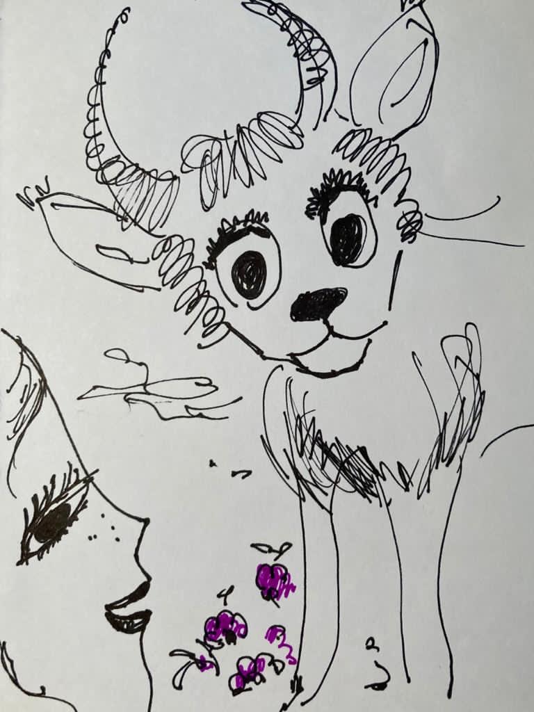 Дверь ей открыло существо похожее на белку с блестящим носом и мягкими ушами, чем-то неуловимо похожее на её маму. Тут Марта поняла, что это мир непридуманных сказок, поэтому она может сочинять, просить и загадывать, учавствовать в сочинении своей сказки.