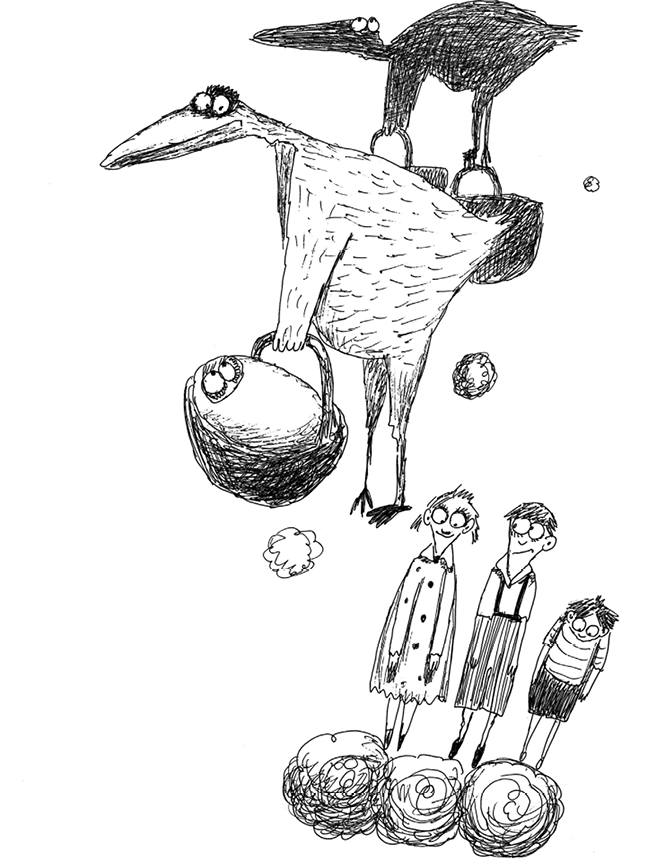 – Папа так сказал. У нас на даче целая семья аистов живет. У них гнездо на большом колесе, которое специально папа на шест прикреплял. Вот они-то однажды меня к нам домой на балкон и уронили.
