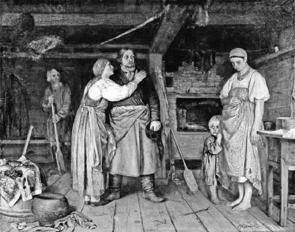 Ф.С. Журавлёв. Приезд извозчика на родину. 1868