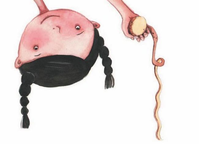 Она кругленькая и румяная, как пончик. Она лучше всех лазит по деревьям и умеет свистеть громче мальчишек. У Сони длиннющая коса, почти что до попы. Когда ей нужно залезть на дерево, Соня суёт кончик косы в рот, чтоб не мешала, и смело карабкается по веткам.