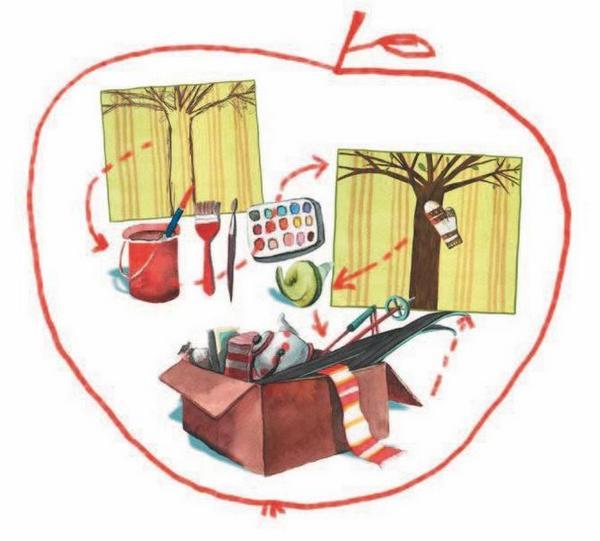 Я пробежалась по комнатам и собрала всякие потерянные вещи: одну варежку на резинке, красный чехол без зонтика, синий зонтик без чехла, футляр от очков, вязаный шарф игрушечного медведя, лежащего непонятно где, несколько дисков с мультиками без коробочек и жёлтую Анину кепку, которую я повесила на моё дерево просто так, для красоты.