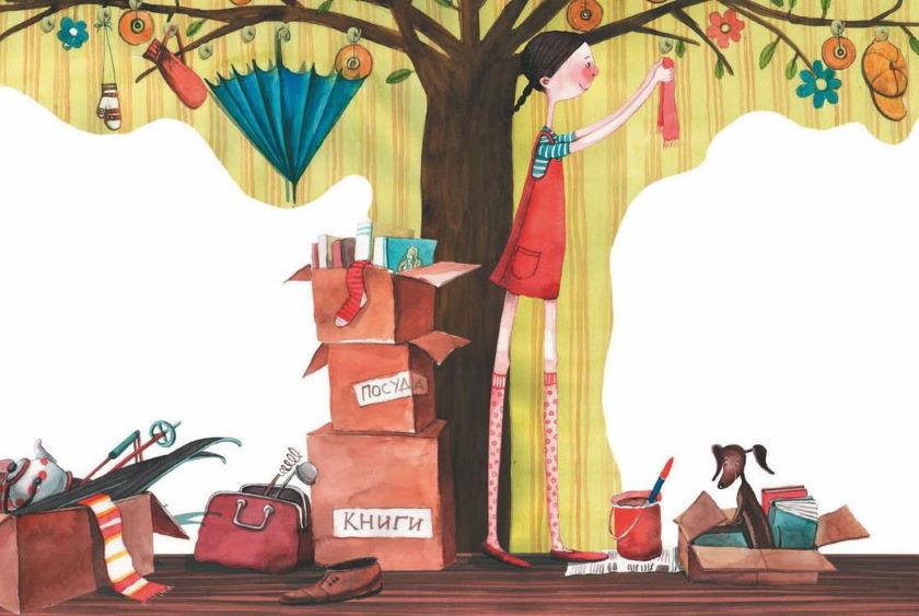 Я вынимала из коробки свои книги и ставила их на полки. У нас была куча картонных ящиков. Папа подписал, где лежат кастрюли, а где – одеяла. Но мы всё равно всё теряли и путали. Из коробки, где было написано «Еда», торчали лыжи.