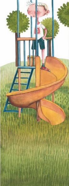 На самом деле стремянка была не такая уж высокая. Но мне почему-то казалось, что с неё я вижу и наш двор – весь, целиком, – и верхушки деревьев, и даже красные крыши домов. На левом плече у меня лежала Мишкина майка.