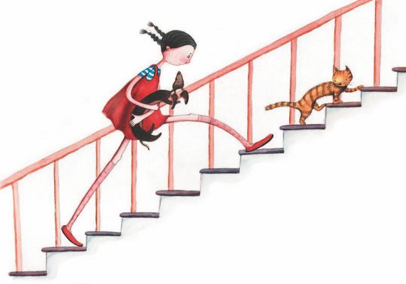 Моя такса Ветка бегает по длинному коридору и гавкает, а откуда-то с высоты на неё лает сердитое эхо.