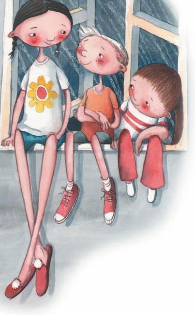 Как будто ему уже сто раз встречались девочки, которые выше папы, в одном носке и в пижаме с медведями.