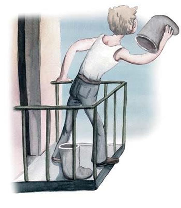 Светило солнце. Дедушка ел варенье прямо из бан ки и красил балкон.