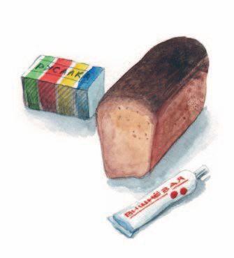 Мы с Мишкой возвращались из магазина. Мишка купил буханку чёрного хлеба, разноцветные мочалки для посуды и зубную пасту. Паста была вкусная, вишнёвомятная. Мишка дал мне её попробовать. От пасты во рту стало холодно, и мы заели её тёплым хлебом. Рядом с нами бежала Любочка. Она смотрела на нас такими печальными глазами, как будто говорила: «Вот она я, бедная собачка. Никто не кормит меня вишнёвой зубной пастой и тёплым хлебом. Никогда-никогда».