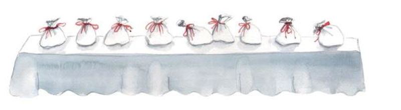 Наконец все подарки лежали на столе. Один, два, три, четыре, пять, шесть, семь, восемь, девять. Девять Мешочков для Радости и Удовольствия.