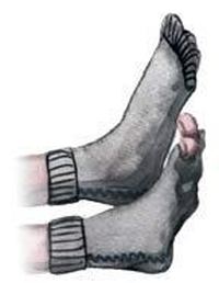 Тогда Дедушка решил примерить дырявую пару. То, что он увидел, ему совсем не понравилось. Носки были чёрными, а из дырок торчали розовые пальцы.