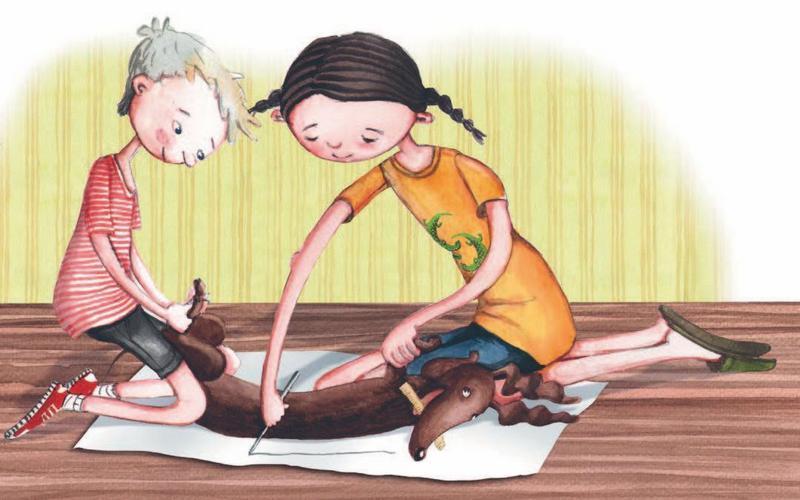Она стояла тихо, как Памятник Самой Послушной Собачке. Даже когда папа мерил, какой ширины у неё живот, Ветка не лаяла, хотя ей точно было щекотно.