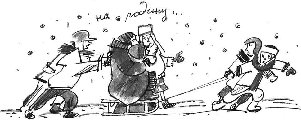 На родину – хорошая идея, к тому же совсем недалеко. Все лето мы бегали на стройку. Три минуты – и вот новый дом. Все лето делали тут ремонт, белили потолки, наклеивали обои, стелили линолеум. Выйдешь из старого дома – вот и новый. Но когда в зимней темноте сначала несешь на одеяле, а потом везешь маму на санках, это расстояние вдруг увеличивается. Васька и Денька впереди сопели и пыхтели, останавливались, чтобы поменяться местами. Когда уставали, их заменяли Глеб с Димкой. Я помогала им – толкала санки сзади. По сугробам мы добирались до нашего старого дома так долго – мне кажется, я бы могла решить все, что нам задали на каникулы по математике. Снег мешал нам идти, заметал тропку, луна слабовата, честно сказать, нынче была, темновата. Хорошо, у Глеба всегда в кармане фонарик.