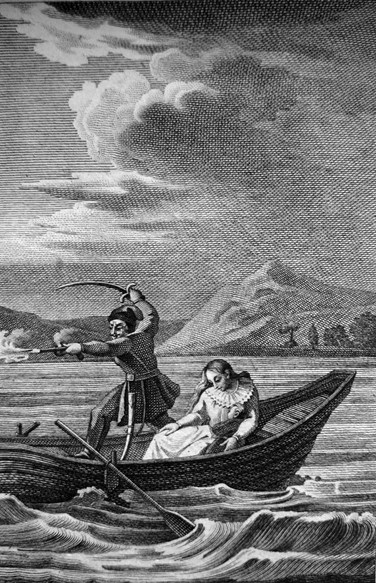 Другая гравюра запечатлевает драматические мгновения, предшествующие окончательной гибели Марины. Вместе с атаманом Заруцким и малолетним сыном Марина спасается в лодке по реке Яик, но стрельцы их настигают: