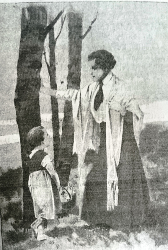 Край неба между крышами, которым она часто любовалась из своего пражского окошка, был так узок, а здесь, напротив, наблюдалась вся ширь горизонта под куполом неба, распростёршимся голубоватым океаном с множеством волн румяных и вольных тучек. Залюбовавшись на эту картину, Ольга сама чуть не взлетела с этими тенями, к ясному небу. Лишь лёгкими шагами нарушив тишину, она оглянулась и увидела маленькую девочку, бегущую вверх к пролеску. Ребёнок не заметил Ольги за стволом крайней березы, на который та облокотилась Но их разделяла всего пара шагов. Заметив её, девочка вскрикнула, но узнав Ольгу быстро подошла к ней и поцеловала руку.