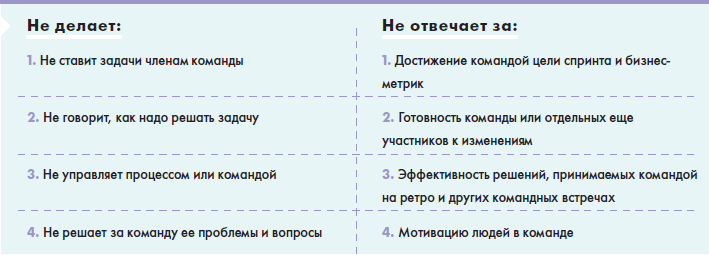 Scrum-мастер не является секретарем команды, руководителем, тимлидом или лицом, принимающим решение.