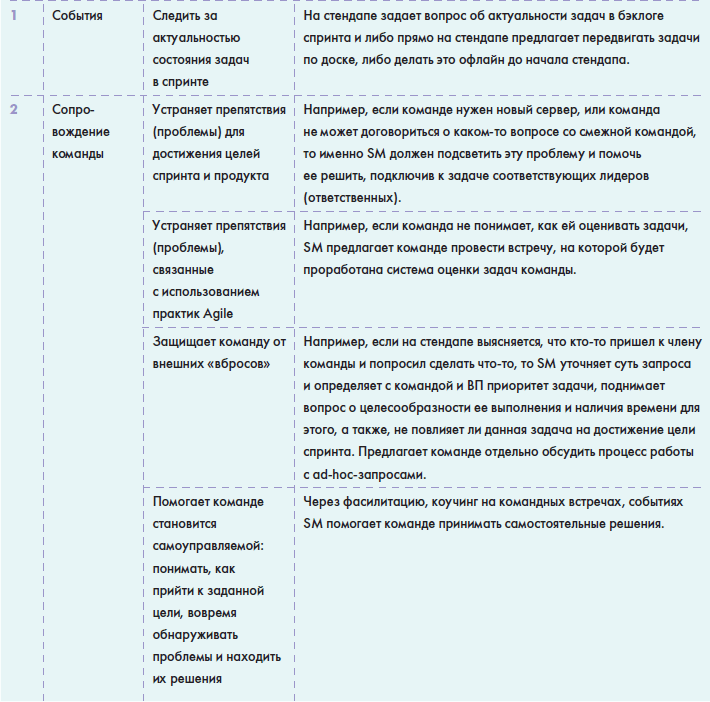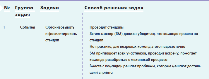 Матрица отражает описание задач Scrum-мастера и возможные способы их решения.
