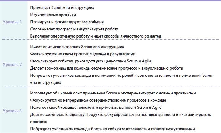 Очевидно, что Scrum-мастер проходит путь развития в своей роли, начиная с уровня junior и до эксперта.