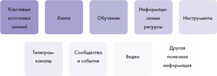 Чтобы эти знания получить, необходимо изучить различные материалы и проходить обучения, которые дадут базовые и/или более глубокие знания.