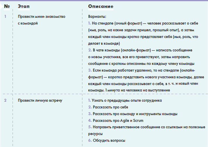Когда в команду приходит новый участник, необходимо провести знакомство с командой и помочь ему погрузиться в процессы.