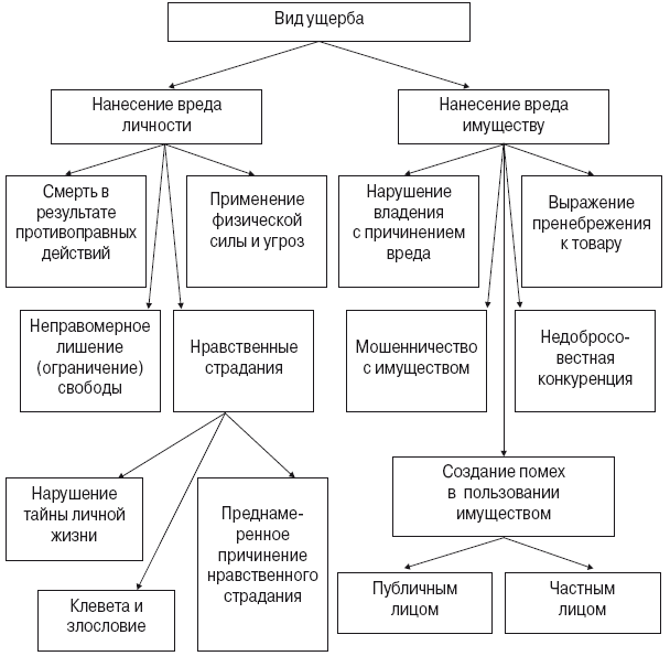 Классификация деликтной ответственности в зависимости от вида ущерба