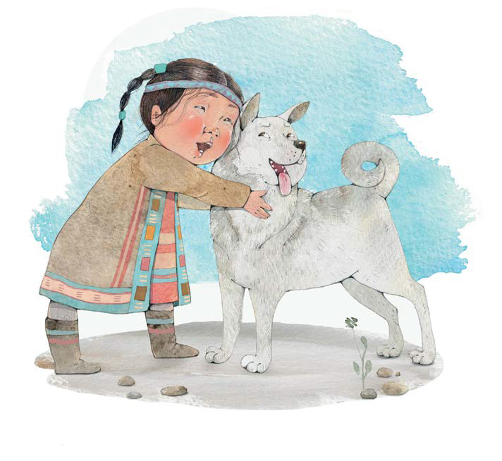 Вдруг позади меня кто-то часто и громко задышал. Я оглянулась: ой, кто это?! Огромная собака со светло-жёлтыми глазами бежала по моим следам. Я испугалась и, приговаривая: «Эй, уходи, чэт, чэт», – припустила по тропинке. Собака угрожающе ощерила длинные острые зубы. Она, видимо, почуяла запах барана-чубуку[4]. Из его шкуры была пошита моя шубка. Я заверещала и кинула в собаку комком земли. Она тоже испугалась, тихо повернулась и исчезла в кустах кедрового стланика.