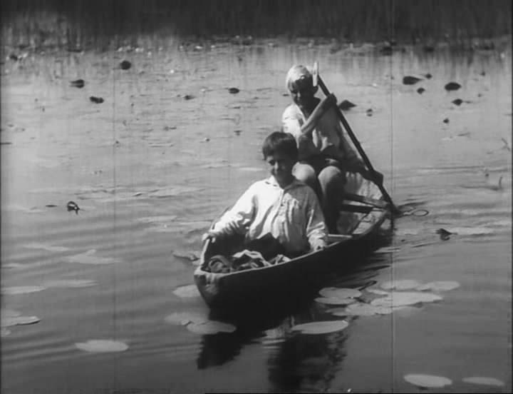 Первая экранизация называлась изысканно, в традиции приключенческих романов с длинным заглавием – «Полесские робинзоны, или Виктор и Мирон на необитаемом острове, их жизнь среди муравьев, лягушек и жуков, борьба с ежом, ужом и медведем и много других удивительных приключений». Ежами, ужами и медведями подростковую публику, разумеется, не возьмешь, становится сразу ясно, что сюжет о пятнадцатилетних подростках сильно омоложен. Самое важное отличие фильма от повести: его герои вдвое младше мавровских. Это еще одна причина провала: те, кто увлекся «взрослыми перипетиями в повести» и поэтому пошел в кино, были разочарованы совсем детскими забавами в фильме. Не стану заниматься подсчетом отличий, тем более, фильм сохранился не полностью – он лишен концовки, и нельзя судить о том, насколько точно исполнился в нем сюжет.