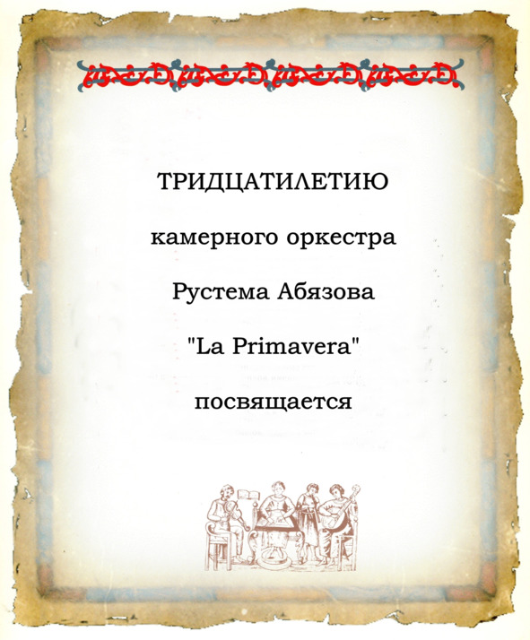 Начиная собирать материал для этой книги, я, как это свойственно многим, перенеслась мысленно в тот осенний вечер 1999 года, когда в одном из казанских залов пройдёт юбилейный концерт «La Primavera». Потоки света, праздничное настроение, смокинги, декольте… И выйдет на сцену Михаил Александрович Теплов, именно он, и никто другой, и скажет: «Здравствуйте! Я приветствую всех вас, собравшихся сегодня здесь, чтобы поздравить с десятилетием наш любимый оркестр и его великолепного дирижёра Рустема Абязова!»
