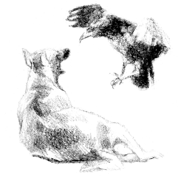 С собаками Карлуша держал нейтралитет, но не упускал случая их подразнить. Выждав удобный момент, когда собака бежала по своим делам, ничего не подозревая, он залетал сзади, пикировал на собаку и, пролетая над ее головой, хлопал крыльями по кончикам ушей. Собака взвивалась, визжа и лая от досады и неожиданности, а Карлуша усаживался на дерево, дожидаясь, когда улягутся страсти, чтобы повторить свой трюк.