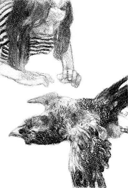 Однажды, гуляя по лесу, я наткнулась на двух воронят, тихо сидящих в траве. Видимо, они недавно выпали из гнезда. Вокруг летали взволнованные родители и истошно орали. Осмотрев птенцов, я заметила, что у одного из них кровь на лапке, и он как-то странно заваливается набок.