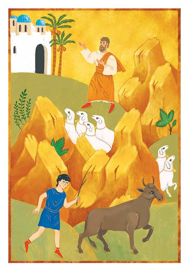 Иоаким шёл и тихонько напевал псалмы царя Давида. Псалмопевец был прямым предком Иоакима. Принадлежать к такому роду было очень почётно. Ведь именно в роду царя Давида, согласно древним пророчествам, должен был родиться Мессия, Спаситель людей.
