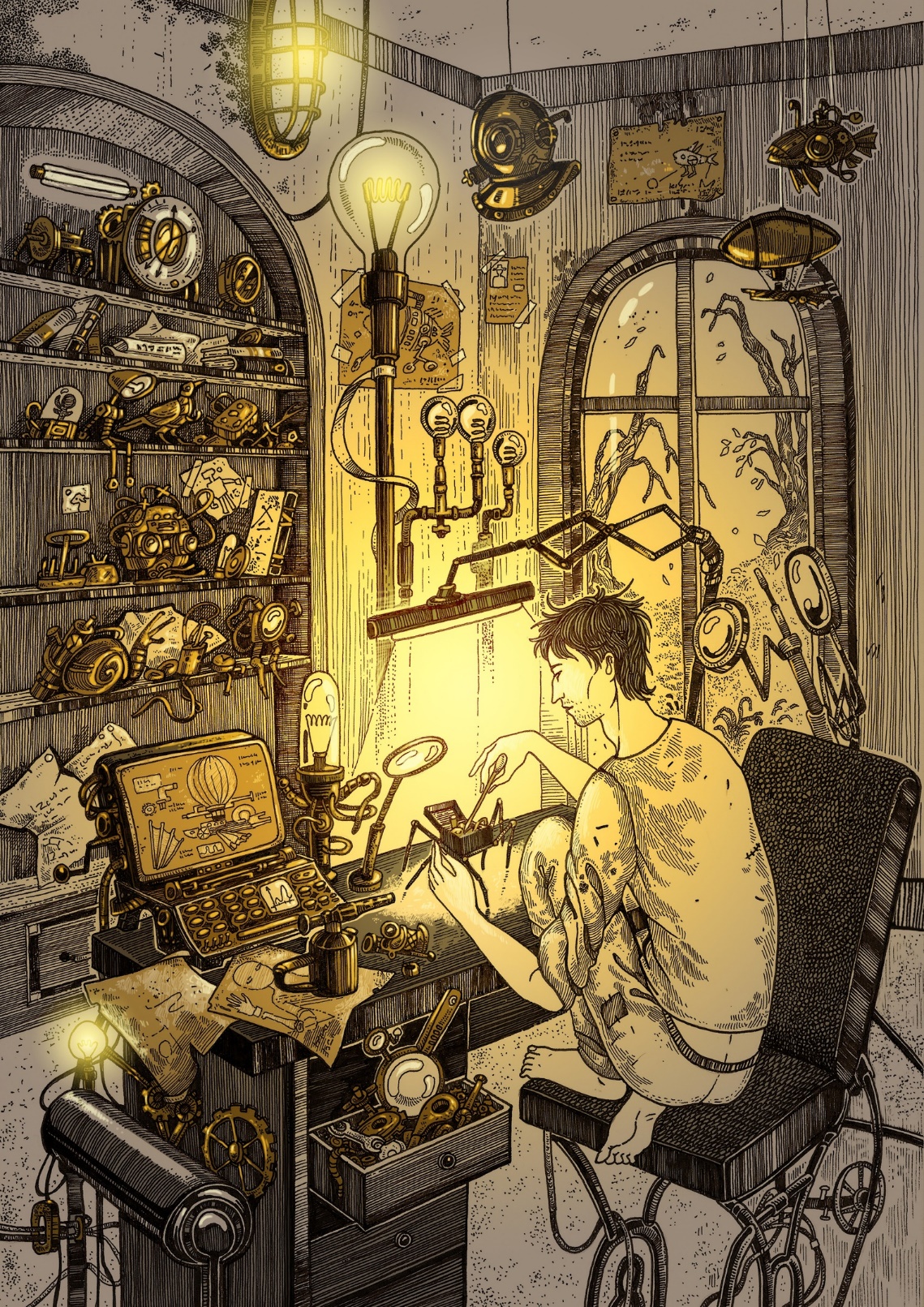 Очнувшись, Зоя не сразу вспомнила произошедшее прошлой ночью и долго с изумлением осматривала комнату, в которой оказалась. Она лежала посреди довольно жесткой кровати с посеревшими от времени простынями на чуть менее жесткой плоской подушке. Шерстяной плед умудрялся кусать ее даже через ткань просторной ночнушки, тоже ей незнакомой. Помимо кровати, в комнате стояли шкафы, заваленные пожелтевшими рукописями, изъеденными жучками, толстенными книгами и тонюсенькими брошюрками – и на всех была написана какая-то абракадабра на непонятном языке. Местами на полках лежали инструменты, какие-то детали и всевозможные механизмы, представлявшие из себя порядком проржавевшее месиво из винтиков, проводков и шестеренок. Все это было заляпано засохшим маслом и щедро присыпано сверху толстенным слоем пыли.