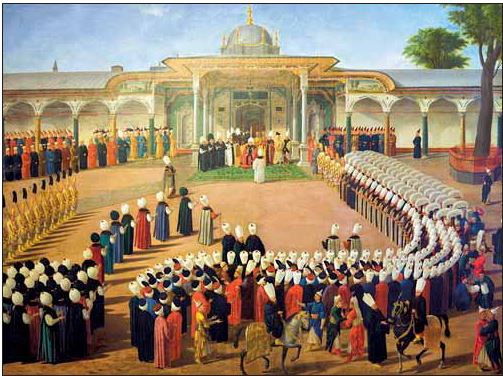 Суд Селима III во дворе Топкапы. Османская миниатюра. Конец XVIII века