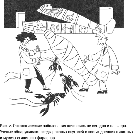 Историческая хроника рака на одном из лучших англоязычных ресурсов, посвященных этому заболеванию, открывается сообщением: “70–80 млн лет назад – раковые клетки в костях динозавра”. Собственно, одной этой фразы достаточно для того, чтобы начать и закончить дискуссию на тему “А вот раньше-то никакого рака не было”. Как мы видим, даже динозавры – и те не убереглись. Что же касается наших человекообразных предков, то их старейшие окаменелости со следами раковых повреждений датируются 4,2–3,9 млн лет до н. э. и принадлежат человеку прямоходящему (Homo erectus).