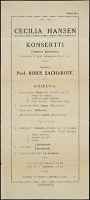 Первый большой концерт дала в 13 лет, большой денежный приз в 14 лет от Фонда Рубинштейна. Истинный вундеркинд. В 15 лет должна была начаться большая гастрольная жизнь, но война перечеркнула все планы. Как ни странно, гастроли, причем зарубежные, начались в 1917. До 1921 года Цецилия еще живет в России, выступает и позирует Илье Репину.