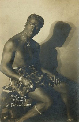 Мастер перформанса, йог и поэт Владимир Робертович Гольцшмидт. В 1916 году этот любитель эпатажа вписался в движение футуристов и, помимо стихосложения, занимался вопросами развития тела и укрепления духа. Свои творческие вечера, которые он устраивал вместе с поэтом Василием Каменским, он заканчивал разбитием о свою голову досок. Как-то он сам себе открыл гипсовый памятник рядом с Большим театром. Там он был с босыми ногами, а пятки его пыталась укусить собака. По словам автора, так он высмеивал узколобых мещан, которые отстали глубоко в прошлом.