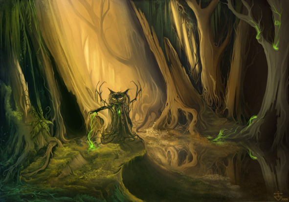 – Не заправившись, верхом не садись,а заправившись, пути берегись.Не конь твой проклятый,а сам виноватый.И чем дальше идет Иван,тем лес становится все глуше,пробираться по нему все туже,а на сердце все беспокойнее.«А лес ли это?» – подумалось Ивану.И впрямь, места тут таинственные, человеком не хоженые:путь-дорогу застилают заросли дремучие,в траве шуршат твари рыскучие,над головой парят птицы летучие.Что за сторона неведомая, чужедальняя?Сердце Иванастрахом обуяло.Это сова – ночная птица,темноты не боится,очами огненными сверкает,незваного гостя понапрасну пугает.Глава 3