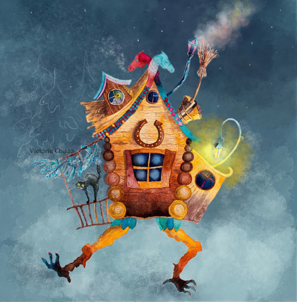 И тут вдруг заметила она возле песочницы книжку с цветными картинками. А на картинке нарисована избушка на курьих ножках, а под ней текст крупными буквами.