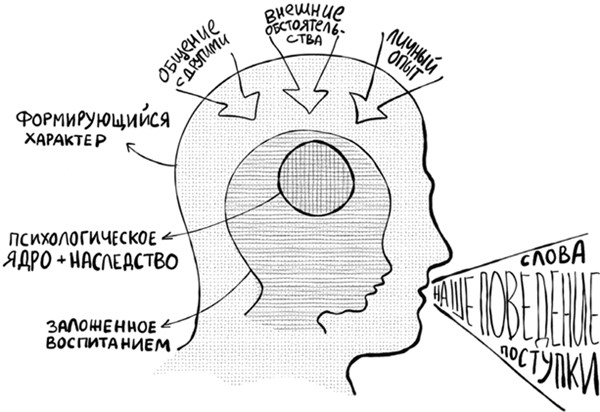 У каждого из нас есть ПСИХОЛОГИЧЕСКОЕ ЯДРО, данное нам природой, – то, что заставляет нас интересоваться этим миром, испытывать любопытство и тревогу. Таким образом мы «закрываем» нижние уровни пирамиды Маслоу[1]. В момент рождения мы получаем только это ядрышко и первый фактор идентичности, а заодно – подарок от родителей, нашу НАСЛЕДСТВЕННУЮ ЧАСТЬ. Разумеется, вы понимаете, что речь здесь идет не о домах и активах, а о психологических и эмоциональных качествах, которые передали нам родители.