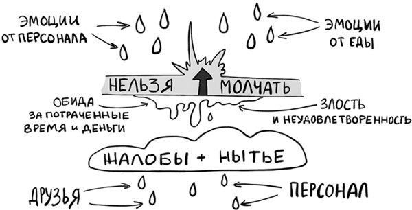 После того как недовольство было высказано, Маше становилось легче. Она даже извинялась перед друзьями за свою вспыльчивость, говоря что-то вроде: «Ну, они реально накосячили». Впрочем, делала она это неохотно. Затем Маша возвращалась домой, где, окончательно успокоившись, говорила: «Больше туда ни ногой» – и занималась своими делами. Но в этот момент люди, на которых вылился весь шквал Машиного недовольства, чувствовали нехороший осадок. Официант, повар, администратор и друзья вынуждены были переваривать эти эмоциональные капли второго уровня, которые для них становились каплями первого уровня.