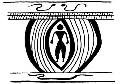 Рождение Бога Неба и Воды (Варуна – Урана) в окружении дождевых потоков и змей. Трипольская культура. III – пер. четв. II тысячелетия до нашей эры