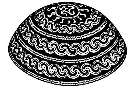 Чаша с острова Рюбген (ныне Германия) с двойной символикой – морской и небесной. Перед нами дно небесного Океана, где хранятся запасы живой воды: большая медуза плавает по волнам. Но приглядимся повнимательней: мы видим знак Солнца (свастику) и само светило, покоящееся среди облаков на одном из небес…
