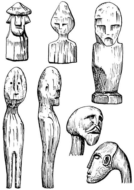 Домовые. Деревянные фигурки домашних Божеств и навершия деревянных жезлов. ХІ-ХІІІ века