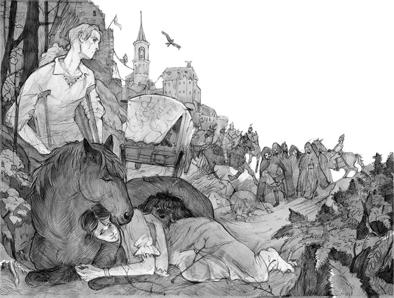 Из кареты нехотя вылез мальчик, ещё не подросток, но уже не ребёнок. Дорожный плащ был ему короток, детский костюмчик чёрного бархата явно мал. Запястья торчали из рукавов, штаны не скрывали костлявых коленок, обтянутых простыми нитяными чулками.