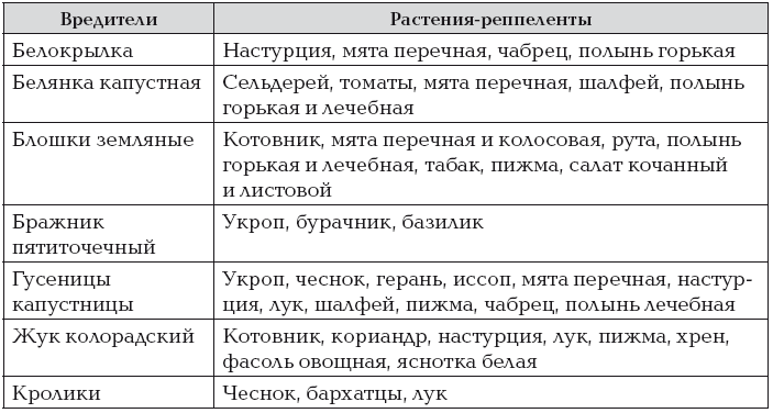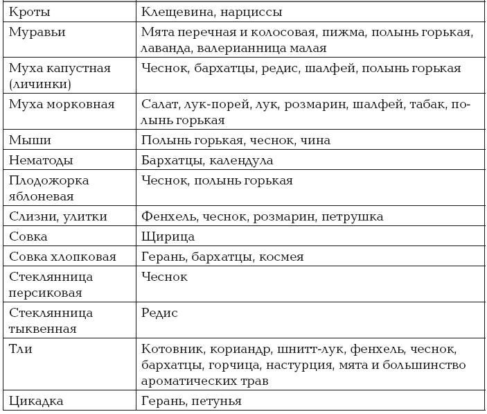 Подробнее о том, какие растения отпугивают тех или иных насекомых, можно узнать из таблицы 2.
