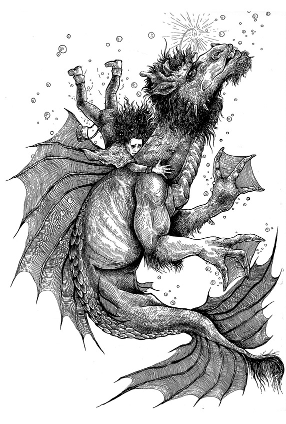 Вдруг ее руки уткнулись в скользкую, покрытую гладким ворсом поверхность. Она трепетала под пальцами Тавни как живая, и девушка из последних сил схватилась за чью-то толстую шею, венчавшуюся жесткими волосами и какими-то рыбьими шипами. Существо мощно неслось вверх, к воздуху, и наконец, подняв фонтан брызг, всплыло на поверхность.