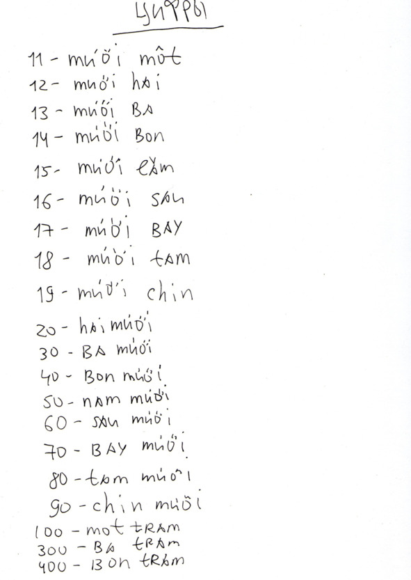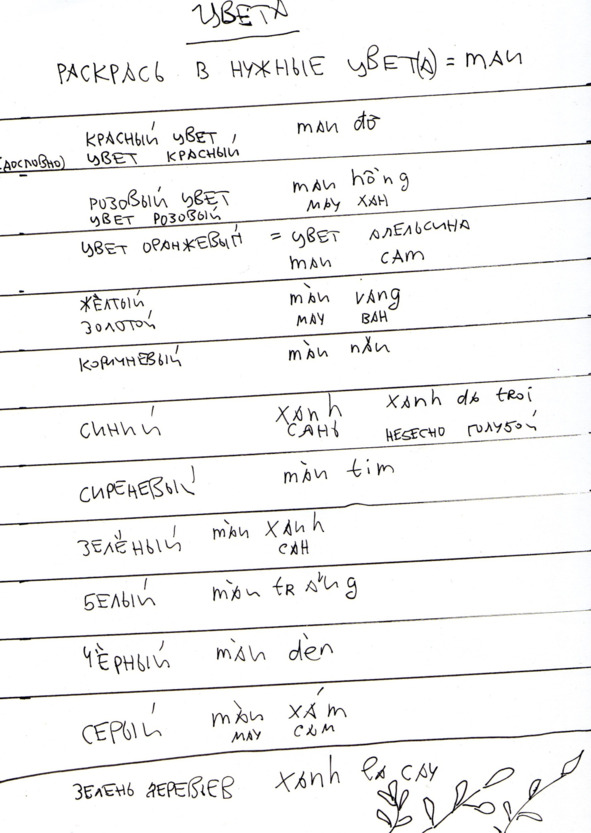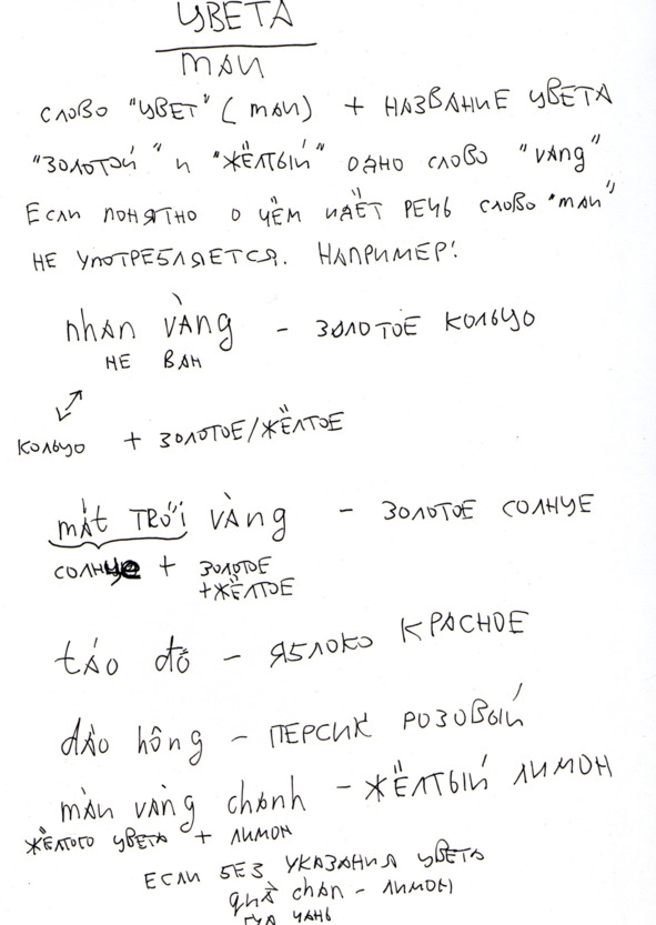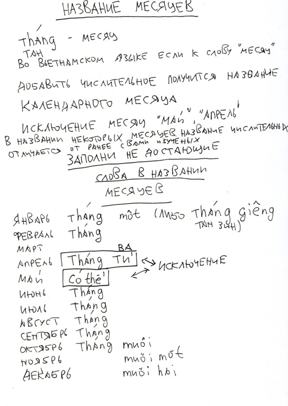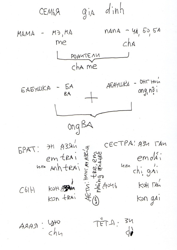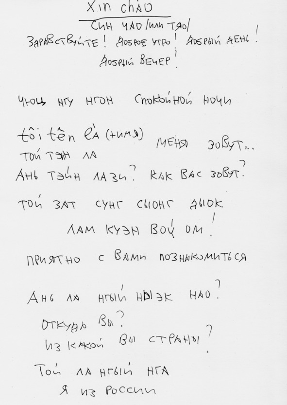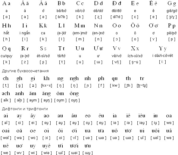 Для записи используется как русская транскрипция, так и вьетнамский алфавит для простоты ориентации в языковом пространстве.